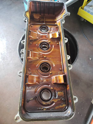エンジンの一番上の部分のオイル漏れから修理をしていき