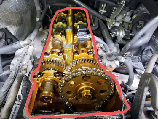 話がそれましたが赤色でなぞってある部分にタペットカバーのパッキンが当たるようになっています。