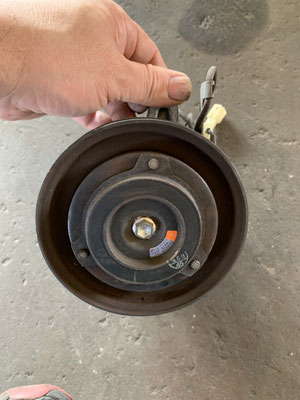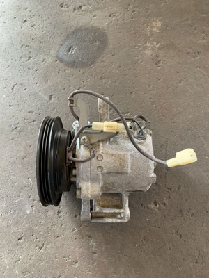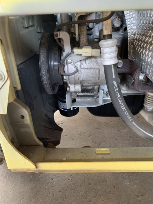 整備作業 · 2021/09/25 エアコン修理 こんにちは。 まだまだ暑い日が続いています。 車も悲鳴をあげています。 今回はダイハツエッセのエアコンの修理です。 エアコンのガス漏れで全く効かないです。 漏れている箇所を調べるとエアコンのコンプレッサーから漏れていました。 これがエアコンのコンプレッサーです。 今回はこの部品を中古品で交換します。 本当はリビルト品で交換をお勧めします。 これが中古品のコンプレッサーです。 なかなかいい物です。 中古品は当たりはずれがあるので、結構気を使います。 交換後エアコンのガスを入れる前に真空引きとゆう作業をしてガスを入れます。 後は漏れが無いか確認して終わりです。 tagPlaceholderカテゴリ: