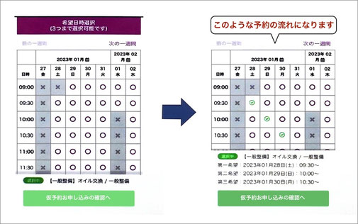 車を当日の朝入庫していただき、夕方にはお返しできるようにしています。ただし、交換部品が多かったり、他の修理箇所が見つかった場合など、数日車をお預かりする場合がございます。ちなみに、車検が受けられるのは、車検満了日の1ケ月前からです。満了日は、車のフロントガラスに貼ってあるシールでご確認いただけます。