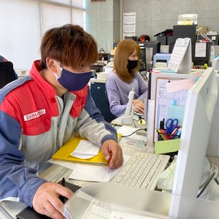 国家整備士(2級5名)がていねいに作業しています。専門用語を使わずお客様にソフトに説明する事が得意な、当社自慢のプロフェッショナル集団です。